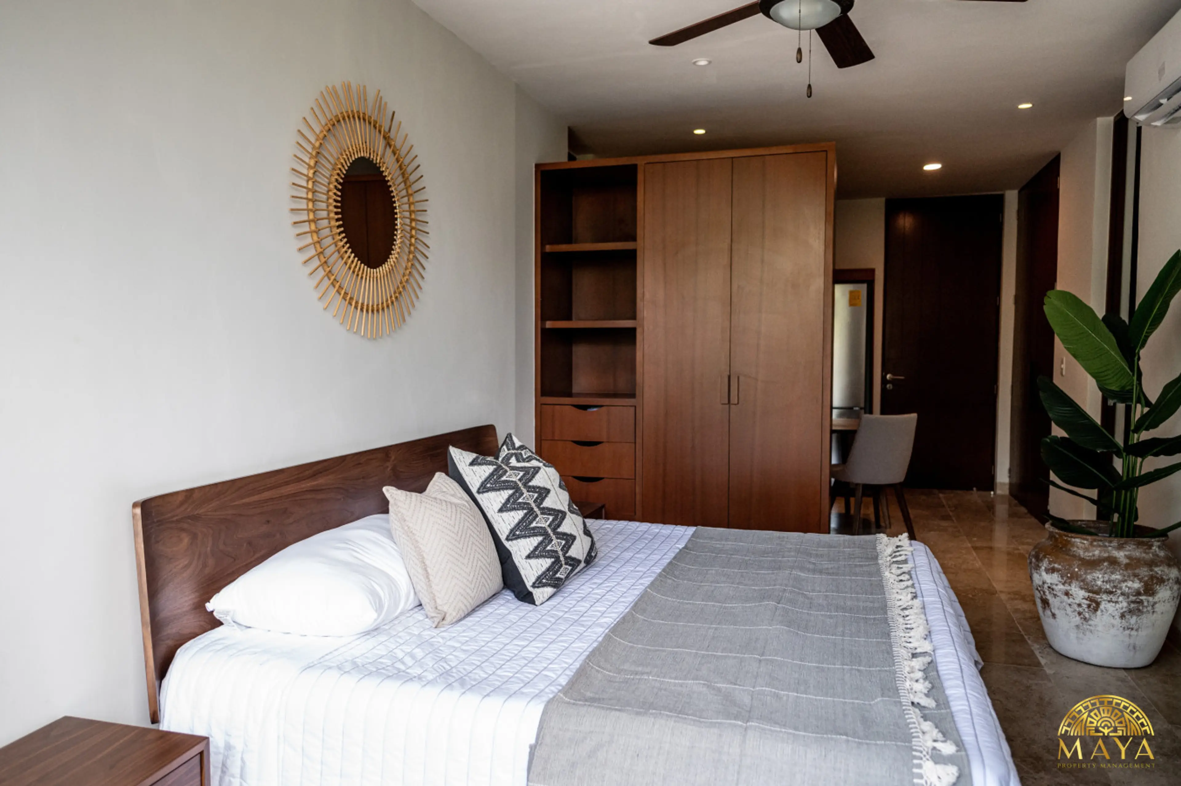 Welcome to the charming Nhoa condominium, located at the entrance of Aldea Zama in Tulum. This modern second-floor apartment offers you an exceptional accommodation experience. The main bedroom is equipped with a comfortable king-size bed, ensuring a restful stay. The kitchen, fully equipped with n...